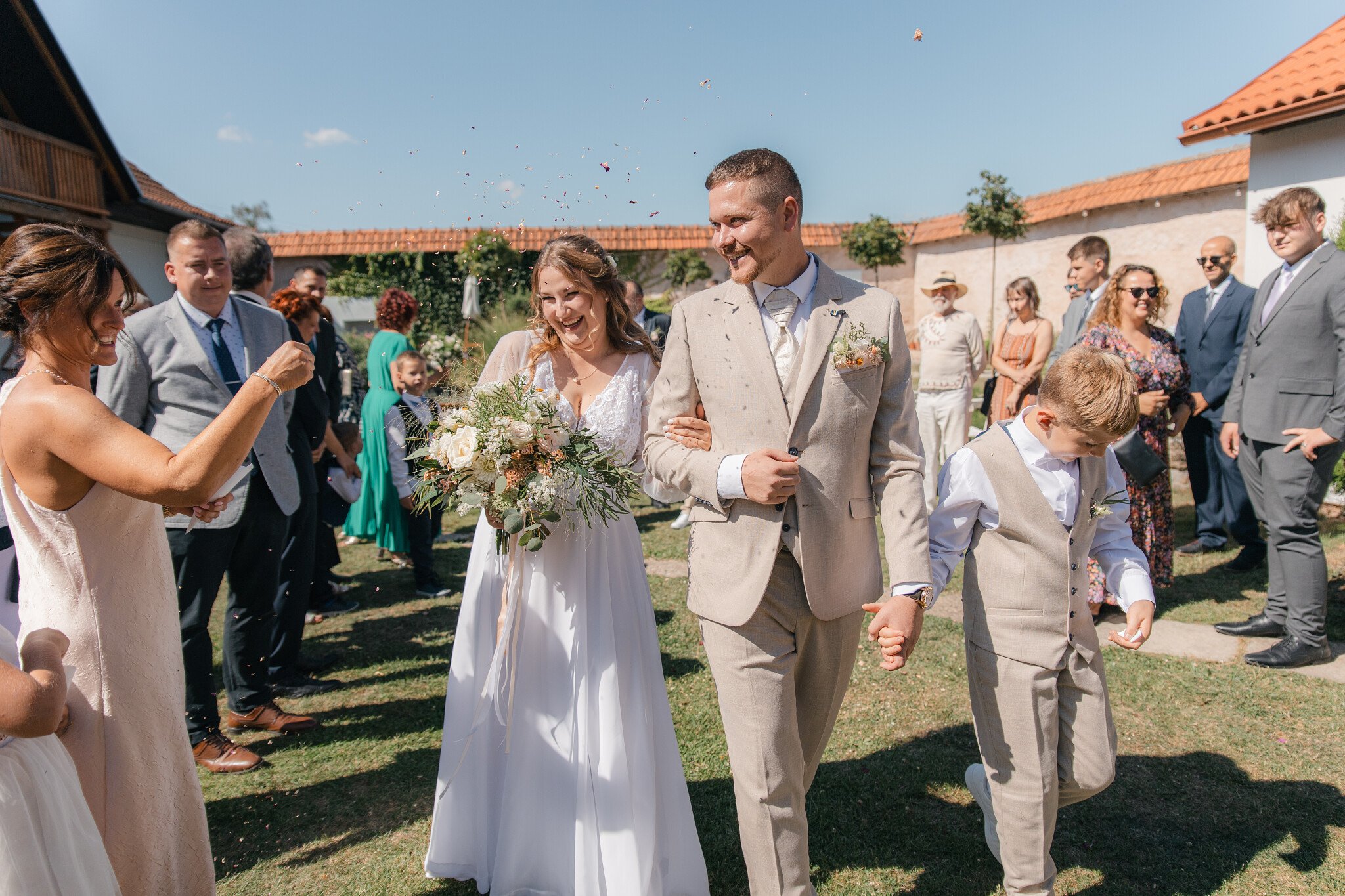 S Luckou jako naší svatební fotografkou jsme byli naprosto spokojení a všem ji můžeme vřele doporučit. Během svatebního dne nám zachytila každý důležitý moment, spoustu krásných detailů a také nespočet přirozených momentek, kterých si velmi ceníme. Náš svatební den byl deštivý, ale na fotkách je zachycena krásná atmosféra, kapky deště, emoce i radost. Fotky přesně vystihují, jaký krásný den to pro nás byl. Máme z nich velkou radost a vzpomínku na celý život. Děkujeme.